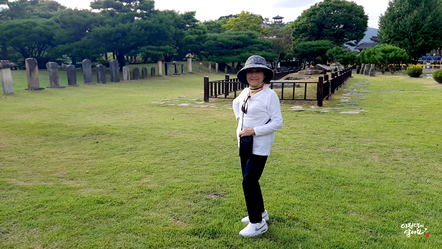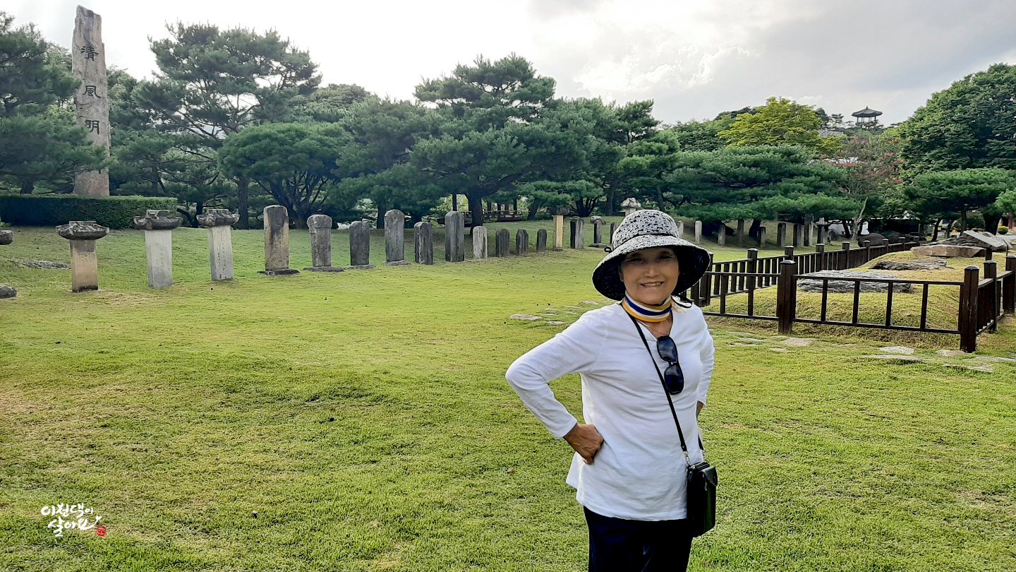 큰 이천댁은 유명한 청풍문화재단지의 비석군과 고인돌을 배경으로