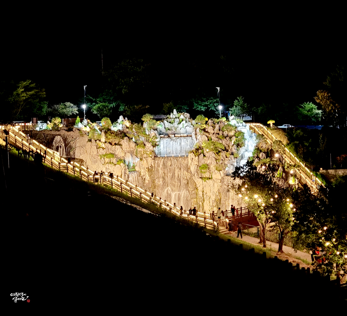 이천시 설봉공원 ‘인공폭포 야경’이 단 하루 만에 이천 최고의 핫플레이스로 등극했다. 17일 오후 7시 30분께 인공폭포 야경을 보려는 시민들이 수백여 명 몰리면서 큰 인기를 끌고 있다. 이천