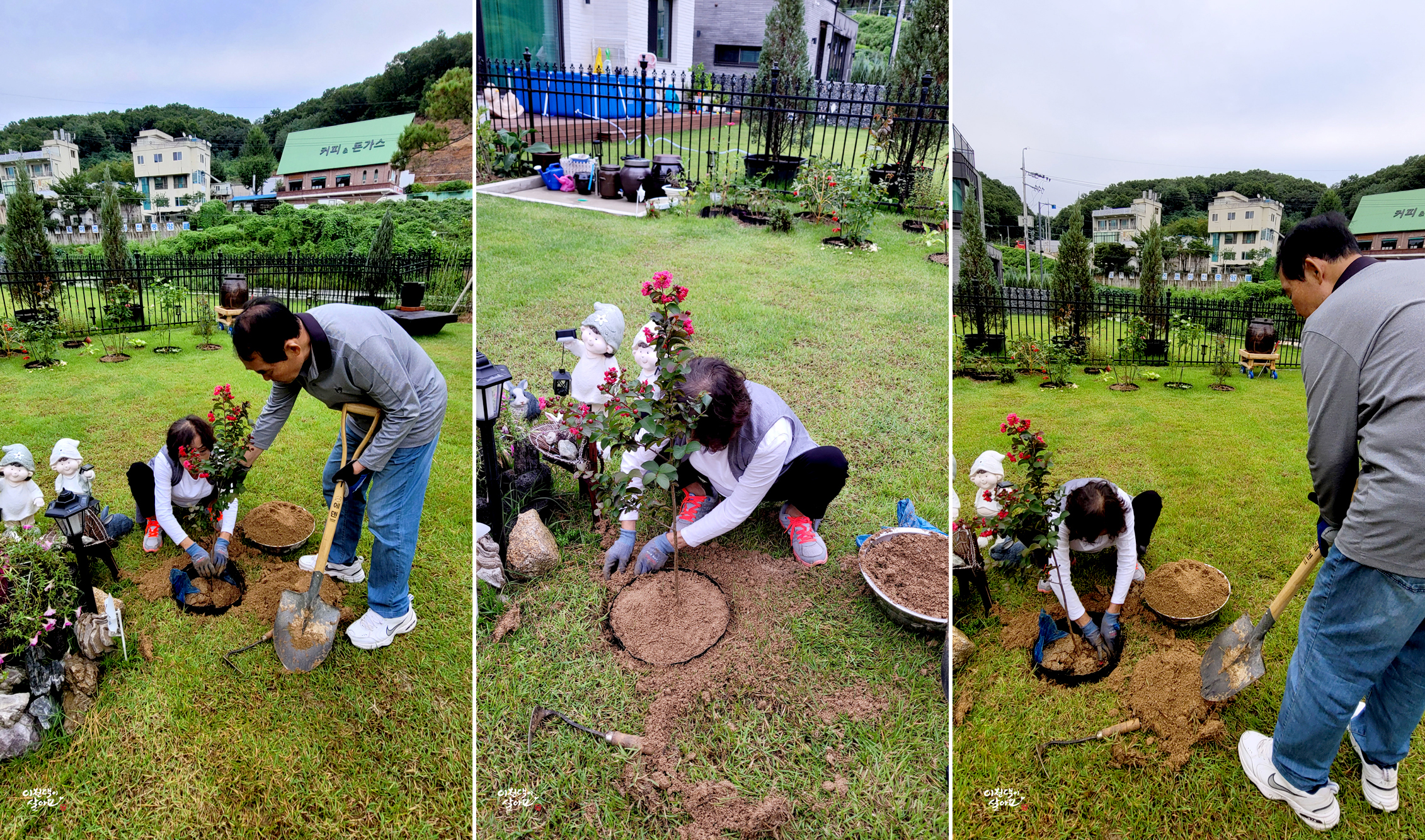 그에 앞서 배롱나무(백일홍)도 미리 옮겨심는 작업을 하는 중이랍니다.