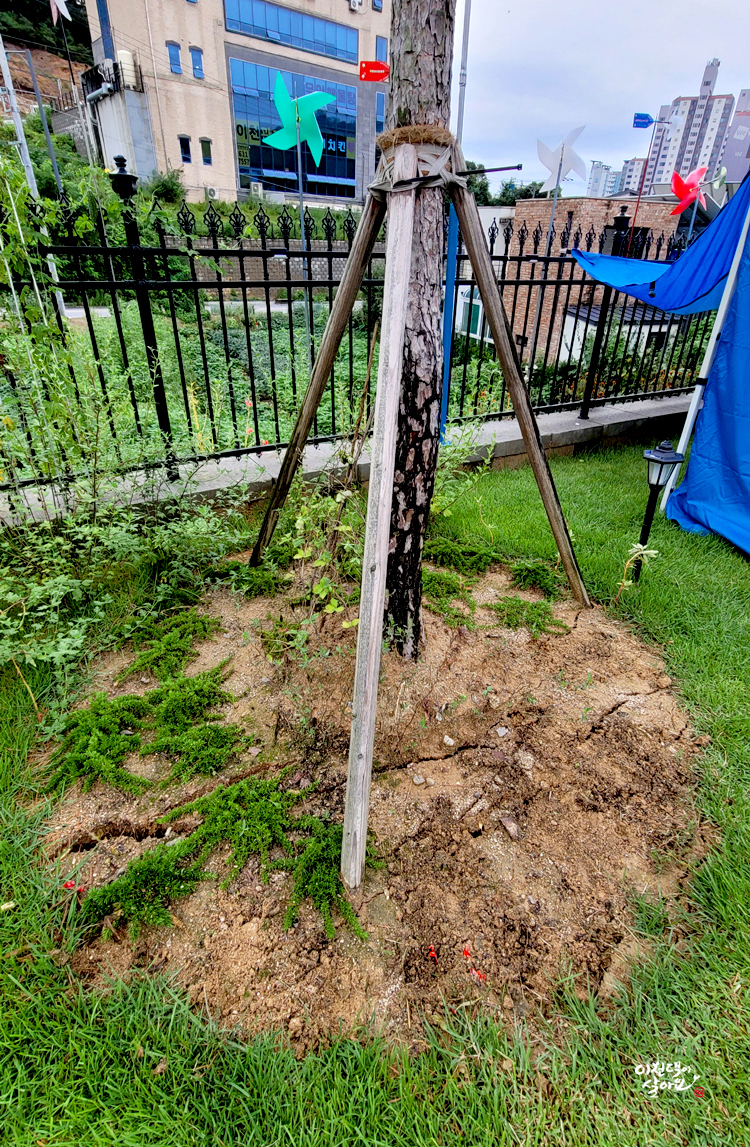 소대감(소나무)이 심겨진 곳 주위 땅이 꺼져
