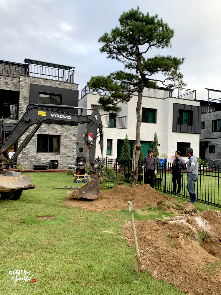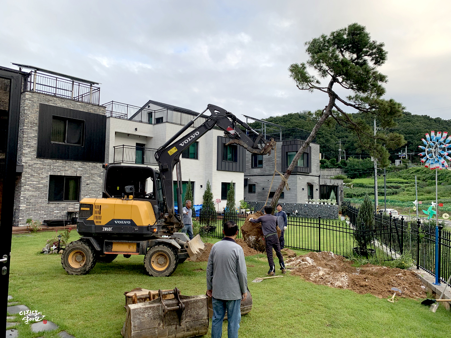 소나무가 옮겨지는 모습을 계속 지켜보고 계십니다.