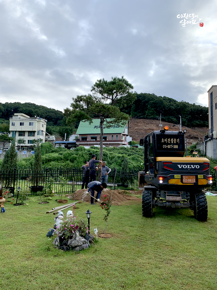 아침 일찍 정원에서의 작업하는 모습을 보고 회사로 출근했습니다.