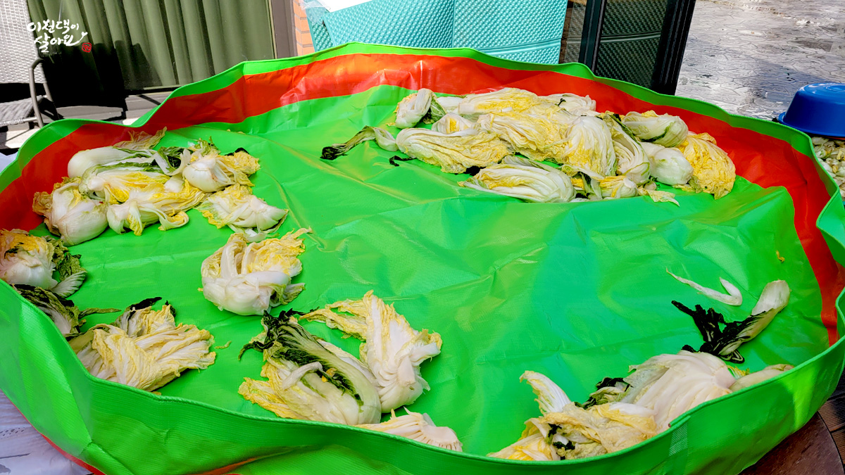 다음날 새벽 4시에 일어나서 배추들을 뒤집어 놓았답니다.