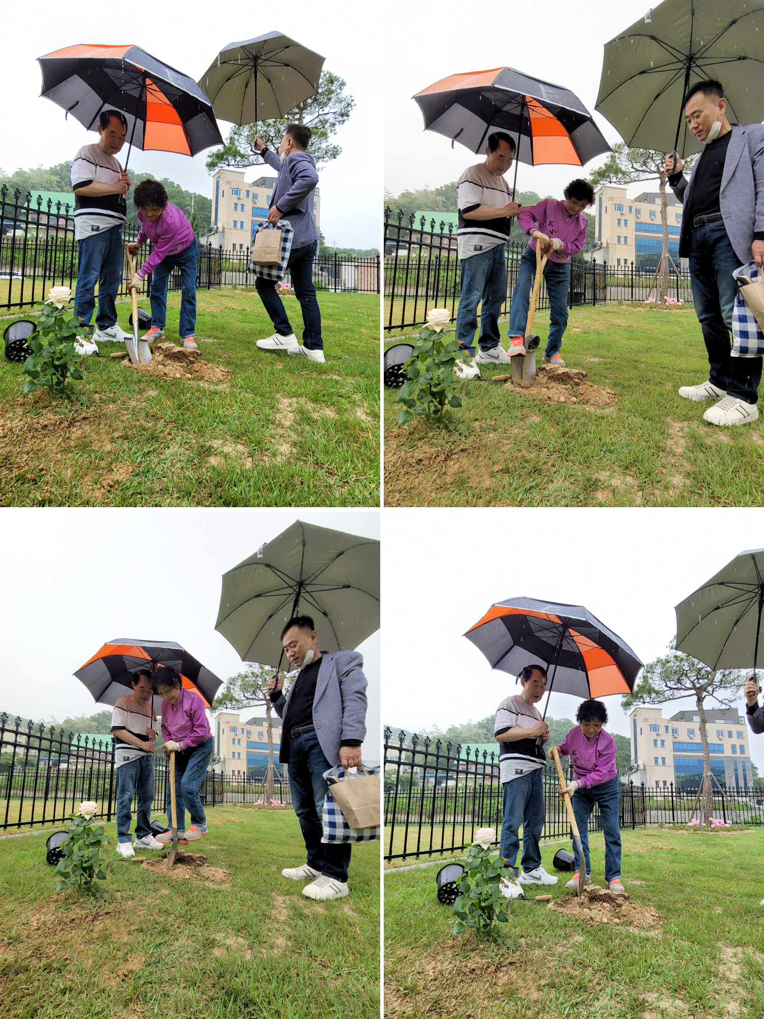 큰 이천댁이 작업할 수 있도록 비를 막아주고 있습니다. 든든한 호위병들 ㅎㅎ