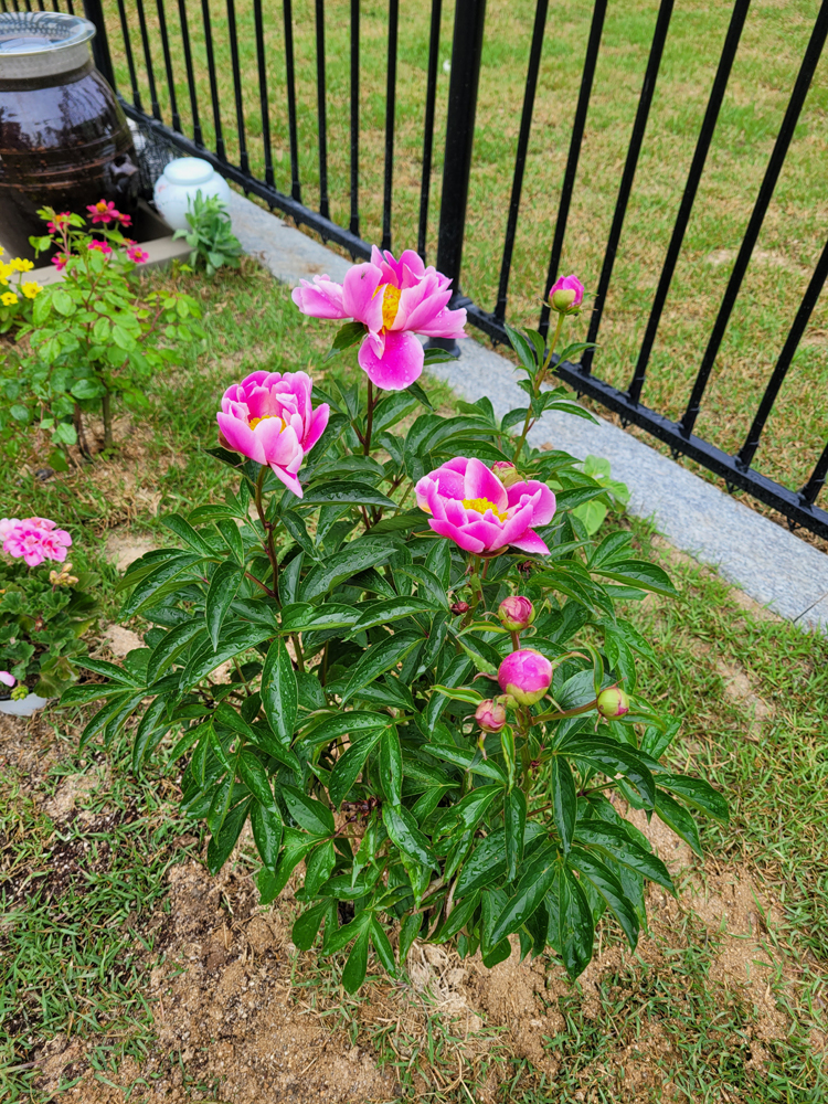 지난주에 옮겨 심은 작약도 꽃망울을 터뜨렸습니다.