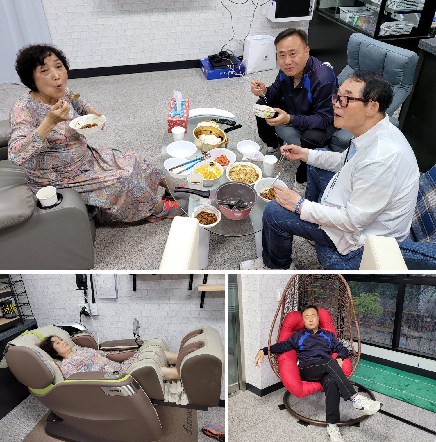 큰 이천댁은 안마의자 삼매경에 빠지셨구~