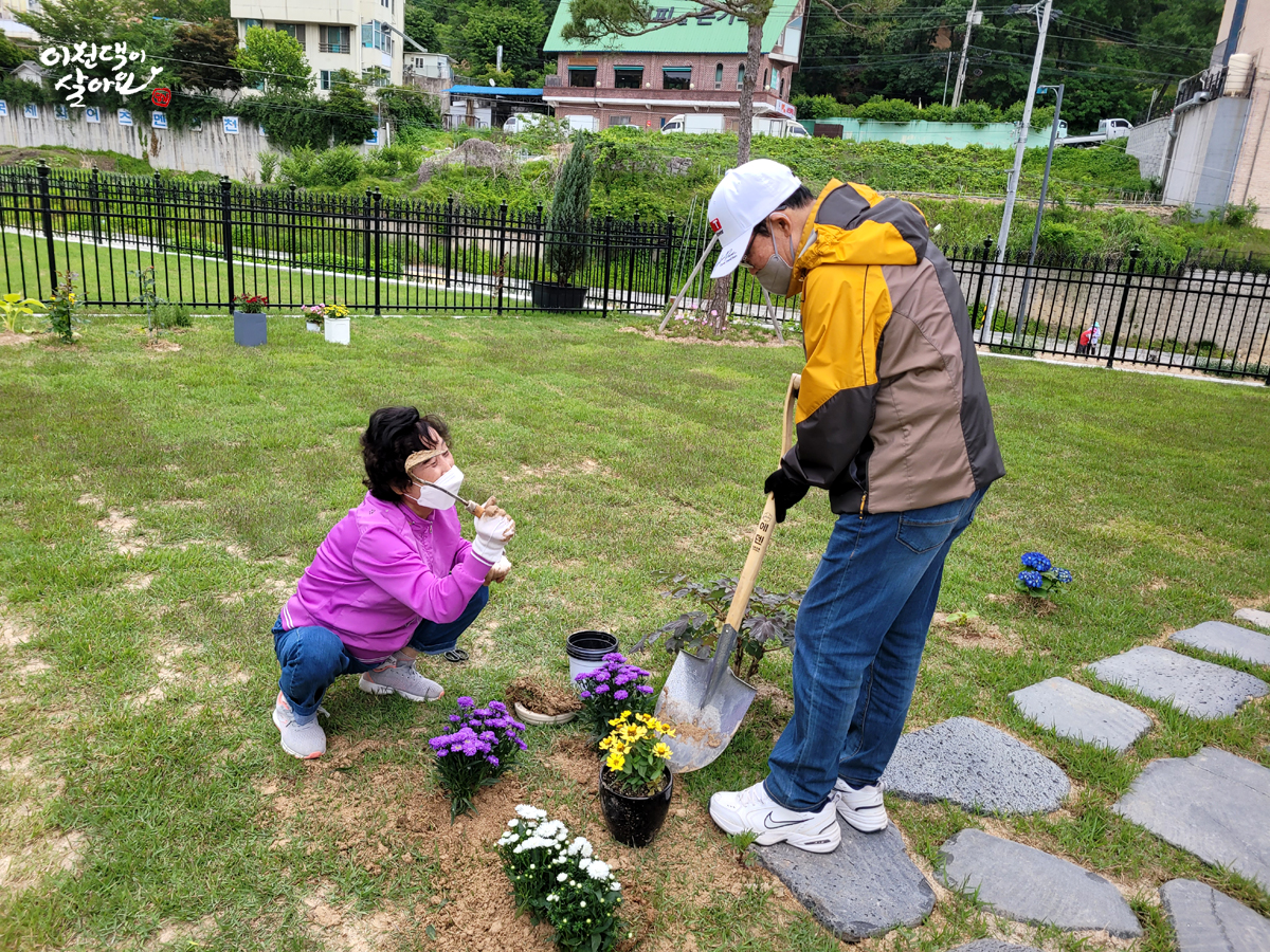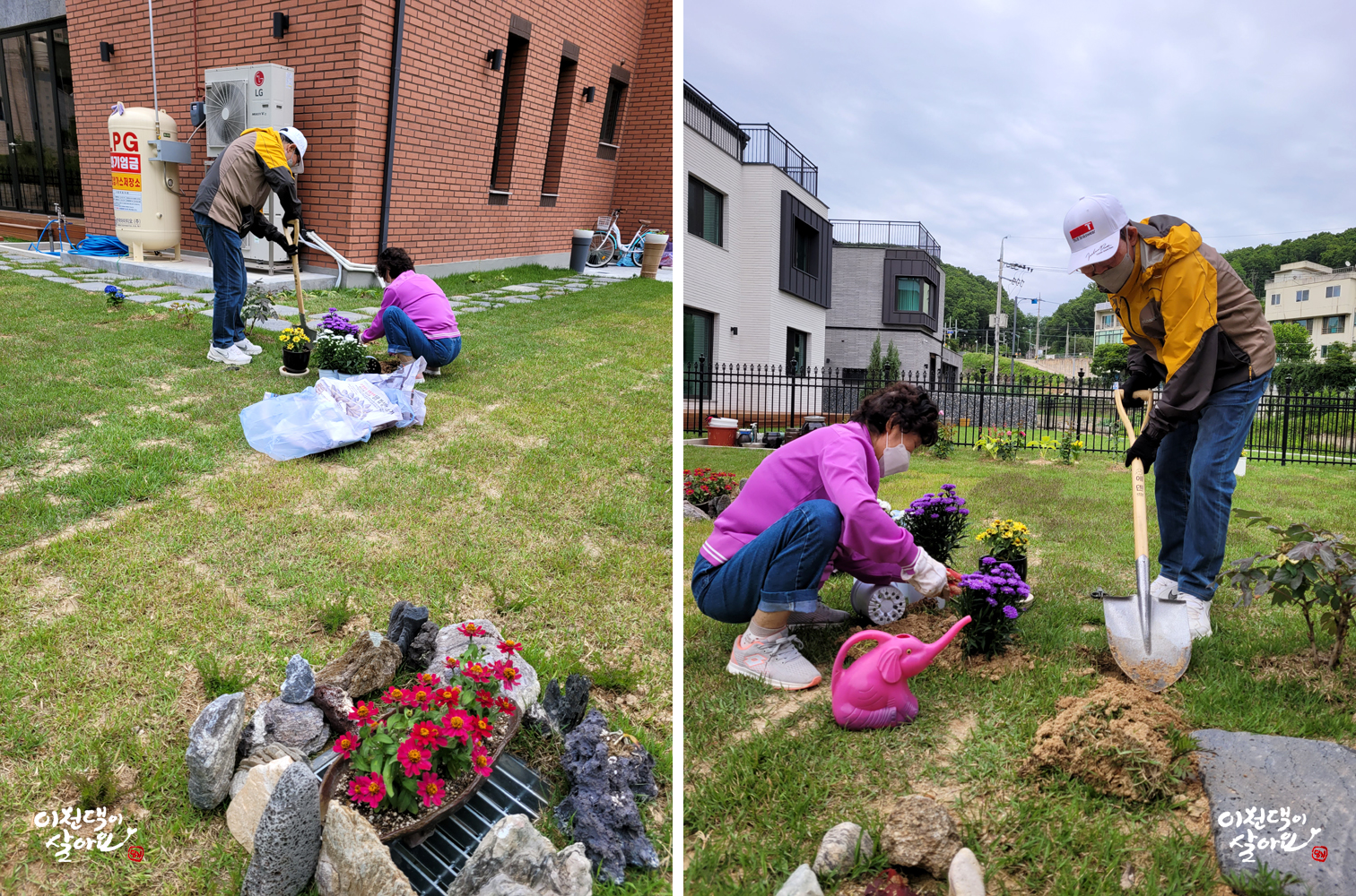 때론 장난도 치십니당~ 큰 이천댁의 얼굴은 웃고 계시지만 호미의 자세는 호러영화입니다. ^^