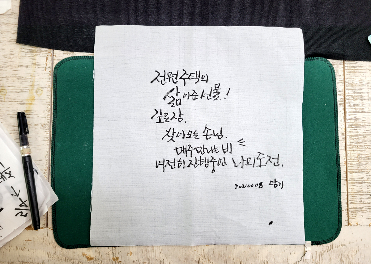 기럭님과 큰 이천댁에게 캘리 수업을 열었습니다.