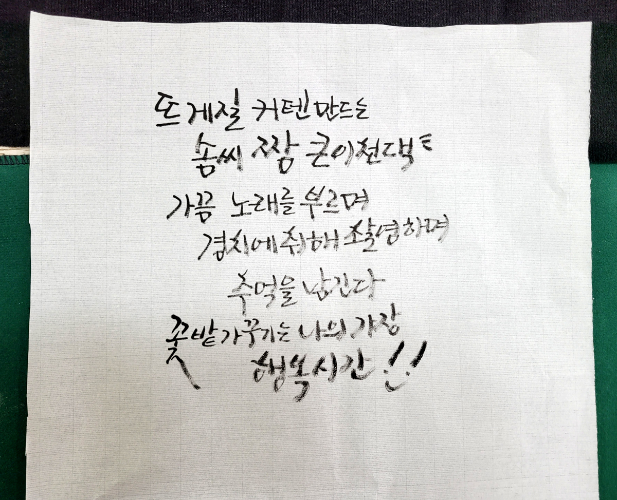 손이 떨린다면서도 멋지게 일필휘지로 ㅎㅎㅎ