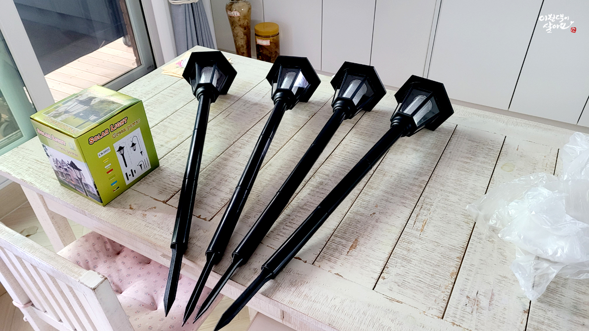 기다리던 태양광 조명이 도착 했습니다.