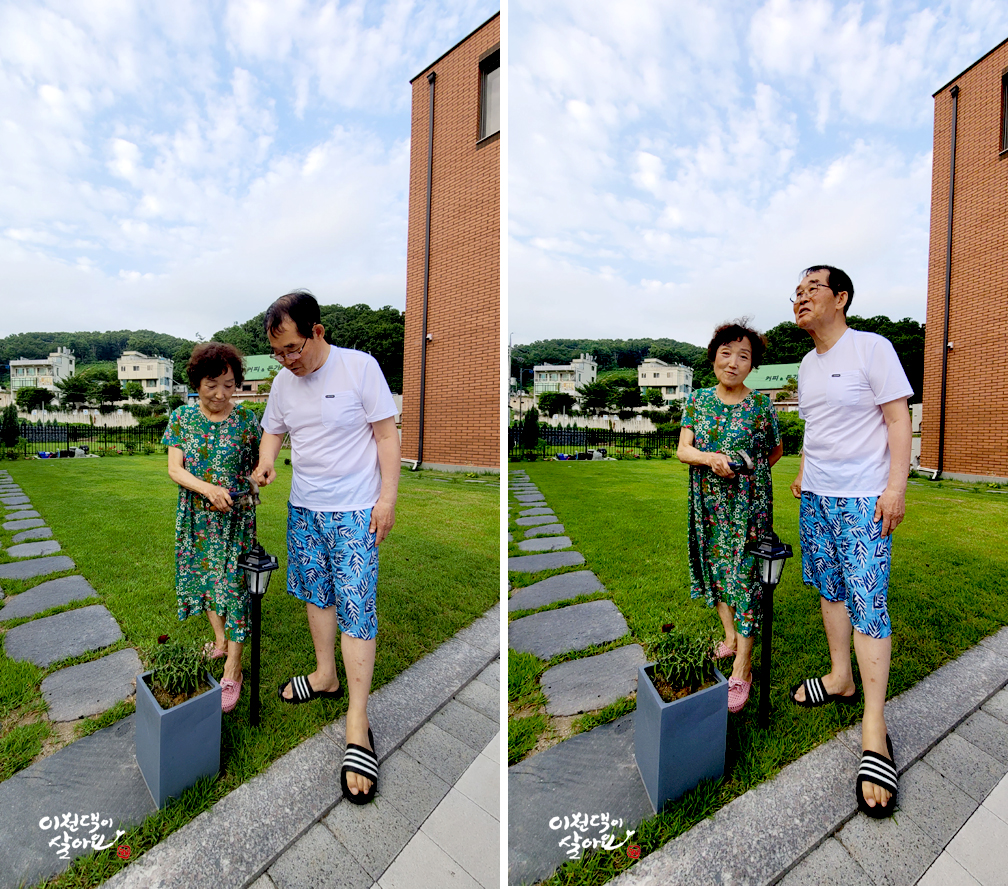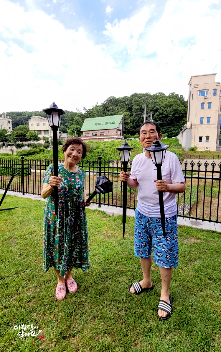 설치할 조명을 가지고, 정원에 나가보았습니다.
