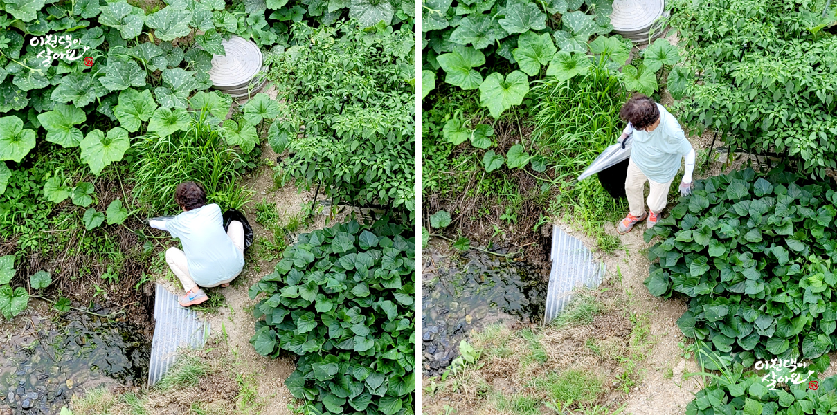 깻잎을 잔뜩 수확해서 올라 오고 계시는 큰 이천댁 ^^