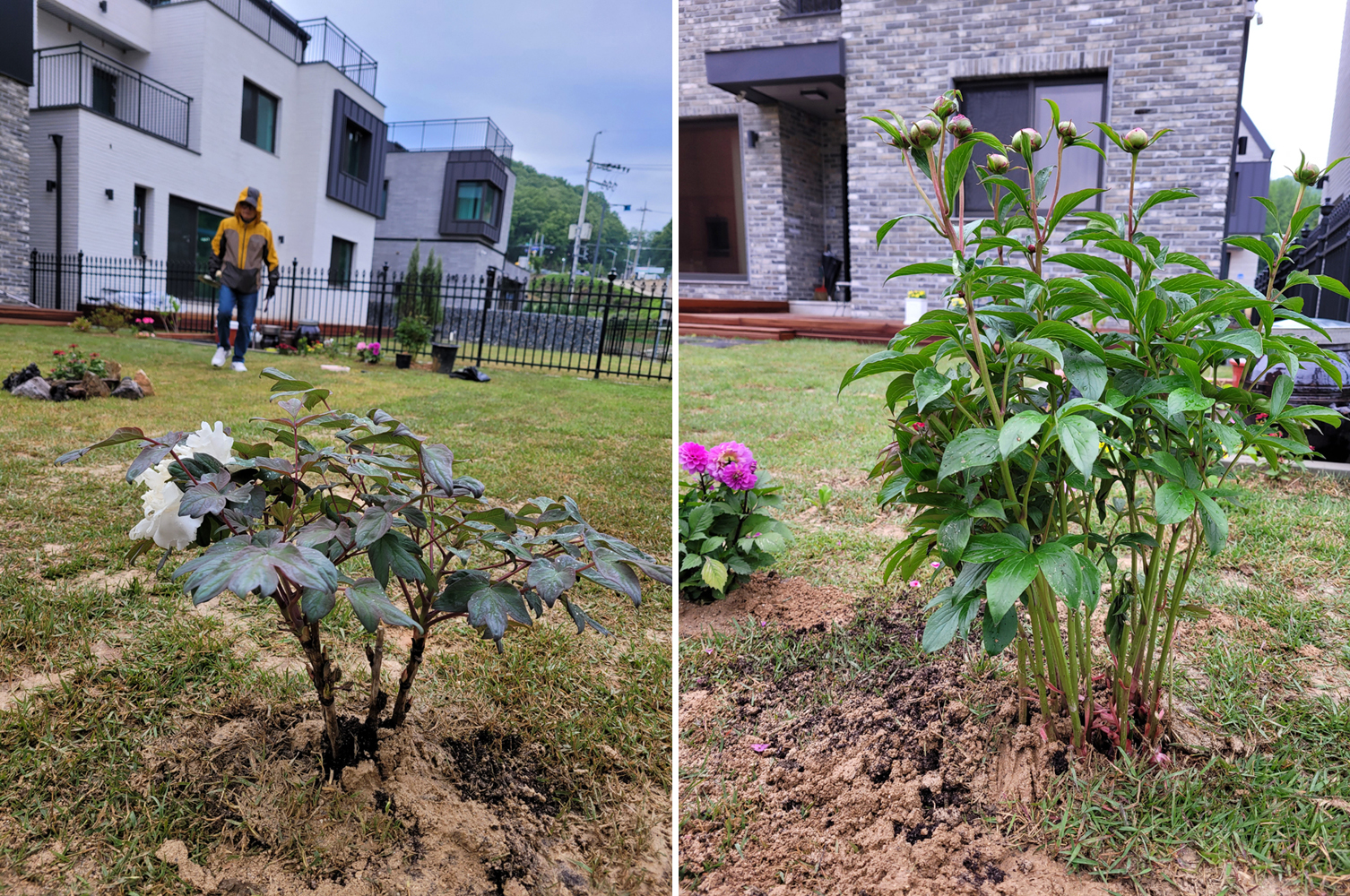 어제 경기도 이포에서 조경을 하시는 분을 통해 김목단과 이작약을 구해와서 앞마당에 심었답니다.