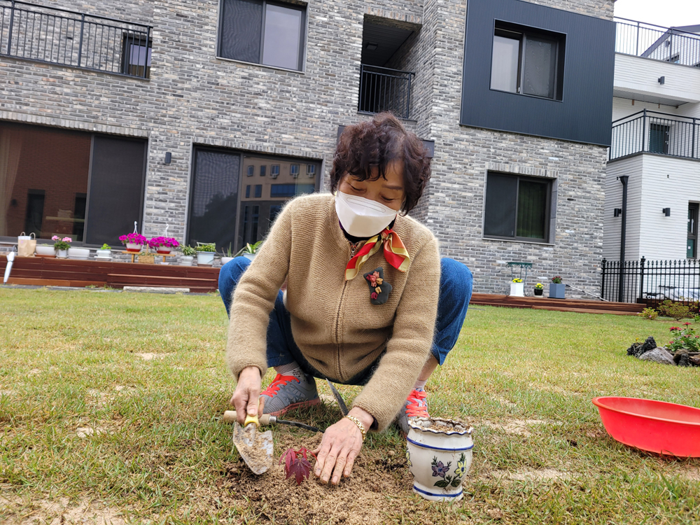 이사오기 전부터 전원 주택 마당을 정원으로 꾸미고 싶었던 큰이천댁은